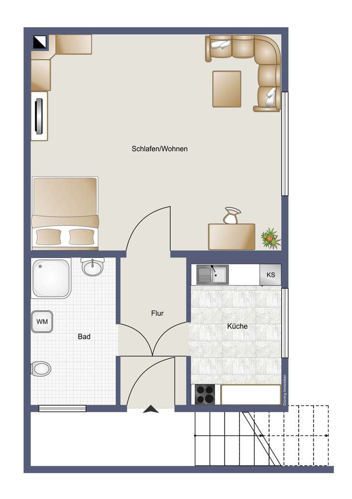 Küchenschränken (im Mietpreis enthalten) ? **Weitere Highlights:** – Beiger Fliesenboden – **3-fach