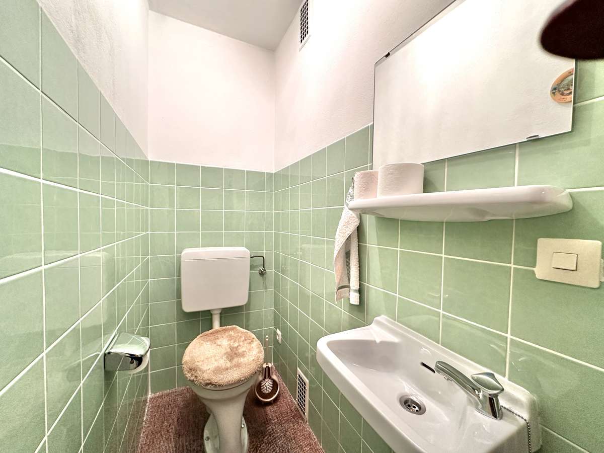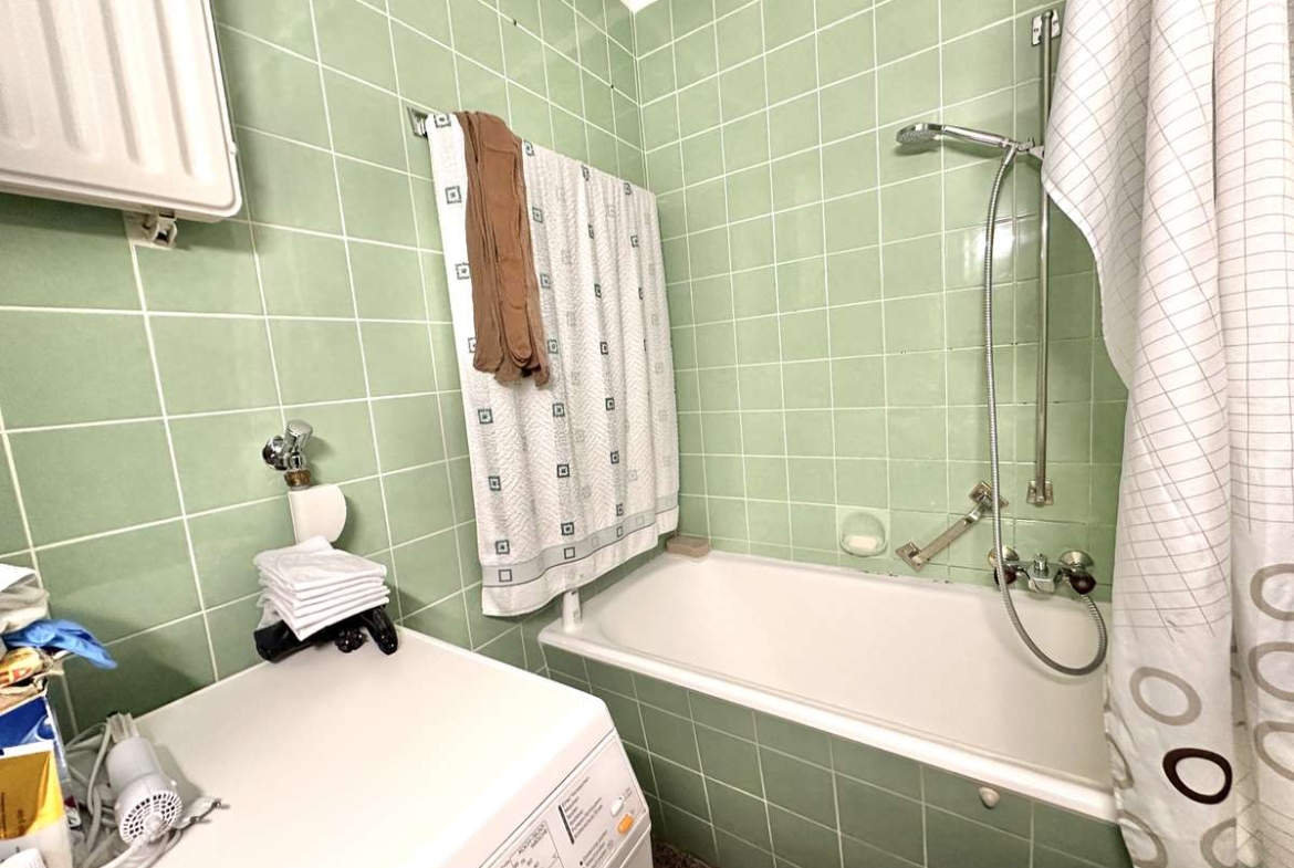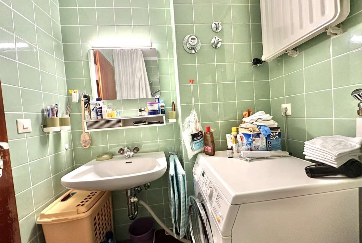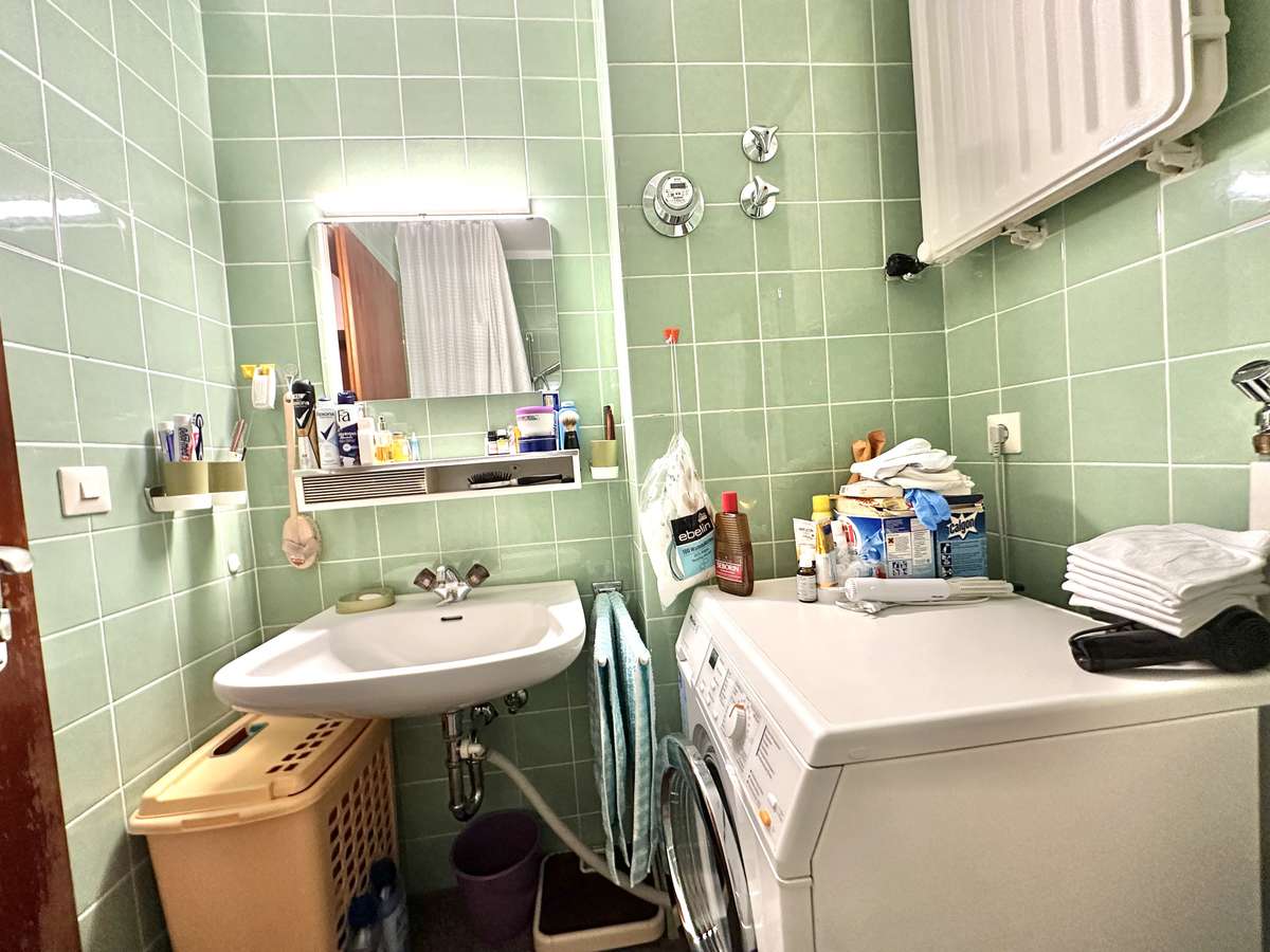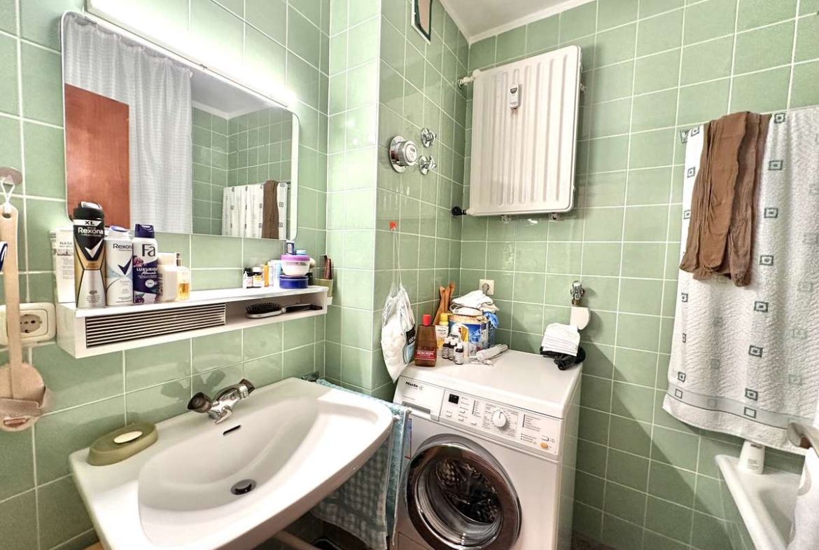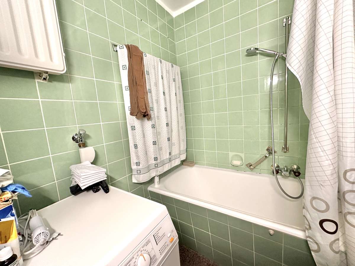 – **Bad** mit grüner Fliesenoptik, Badewanne & Platz für Waschmaschine