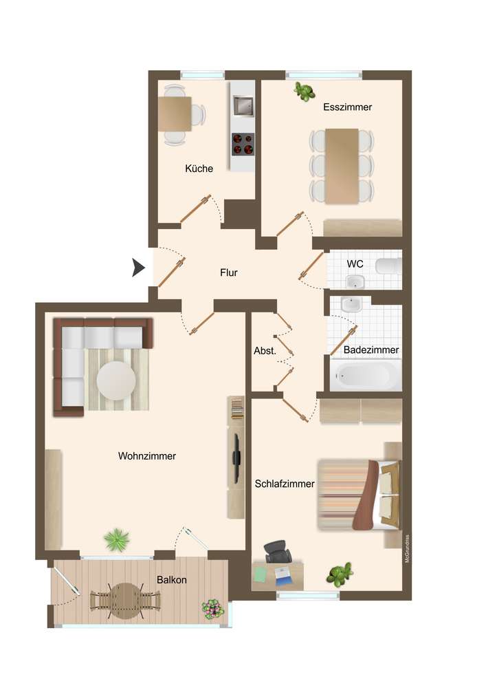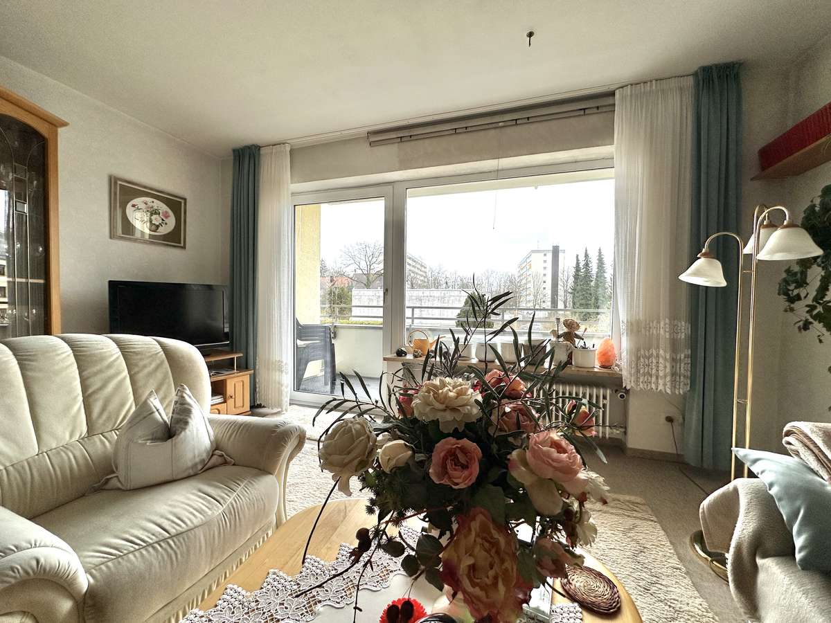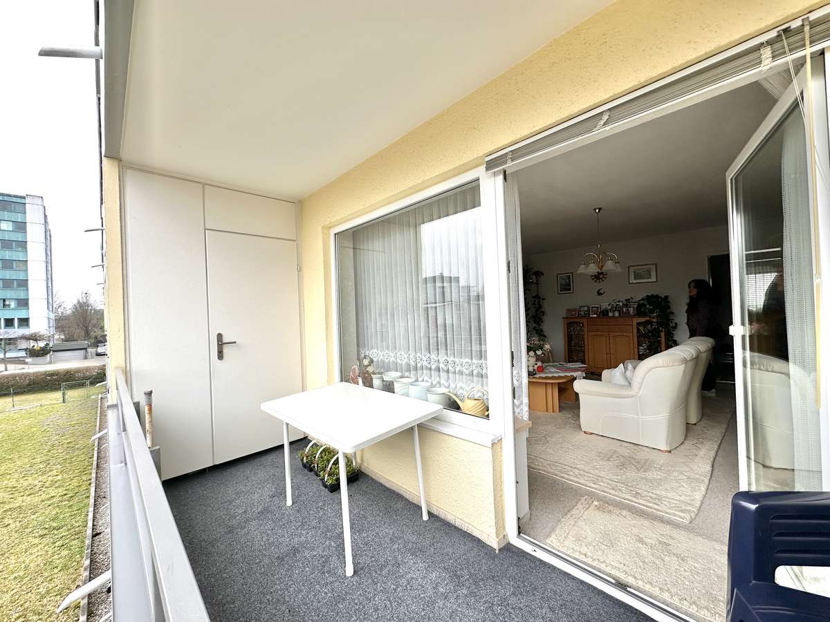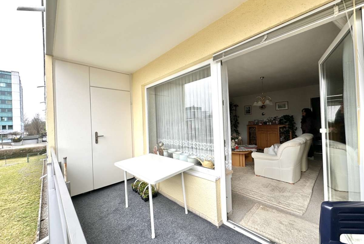 – **Großes Wohnzimmer** mit Fensterfront und Zugang zum Balkon