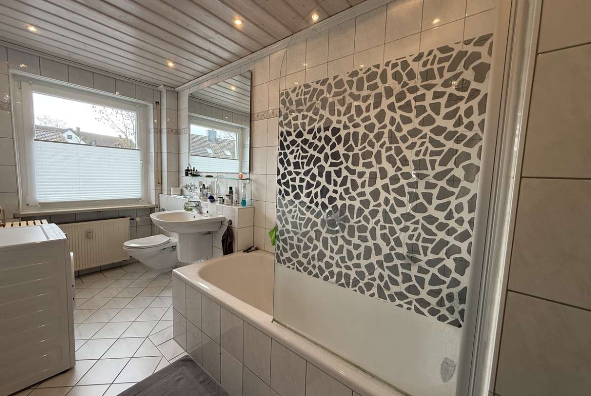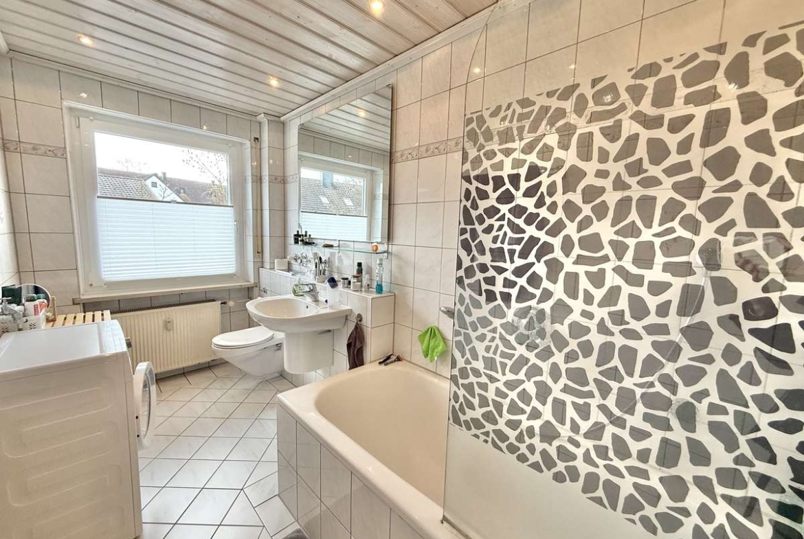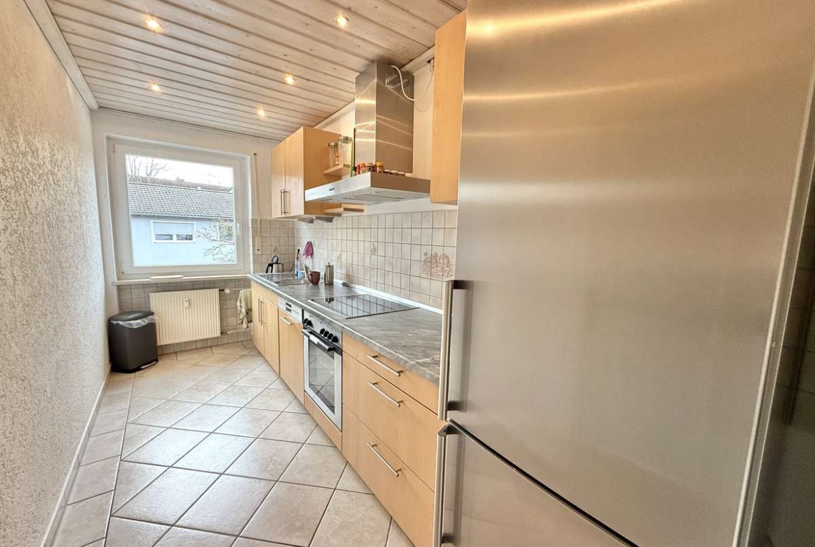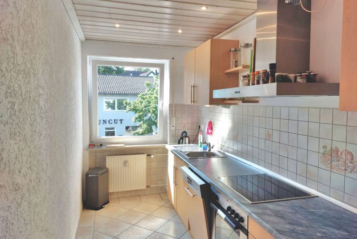 Die zu vermietende Wohnung besticht zunächst durch ihre praktische und moderne Küchen- und Badgestaltung. Die helle Einbauküche mit Fenster umfasst einen E-Ceranherd, eine Kühl-/Gefrierkombination, eine Spüle, eine Spülmaschine sowie einen Dampfabzug. Sie kann vom aktuellen Mieter gegen Ablöse von 800€ übernommen werden. Das gepflegte, grau geflieste Badezimmer überzeugt durch ein Fenster, eine Badewanne mit Glasduschwand, ein Waschbecken, ein WC, integrierte Lichtspots sowie einen Waschmaschinenanschluss und bietet damit einen komfortablen Funktionsumfang. Darüber hinaus verfügt die Wohnung über weiße Kunststofffenster mit Rollos sowie weiße Holztüren, die dem Wohnambiente eine freundliche und helle Note verleihen. Die Fußböden sind größtenteils mit Laminat und in den Funktionsbereichen wie Küche, Bad usw. mit Fliesen versehen. Ein Glasfaseranschluss ist vorhanden, ebenso eine Sprechanlage. Zur Wohnung gehört außerdem ein Kellerraum mit ca. 10 m² und einem guten Stauraumangebot. Ein Außenstellplatz sorgt für bequemes Parken direkt am Haus. Im Erdgeschoss des Hauses befindet sich zudem das Comviet-Restaurant, das kurze Wege für eine entspannte Gastronomie-Nutzung bietet.