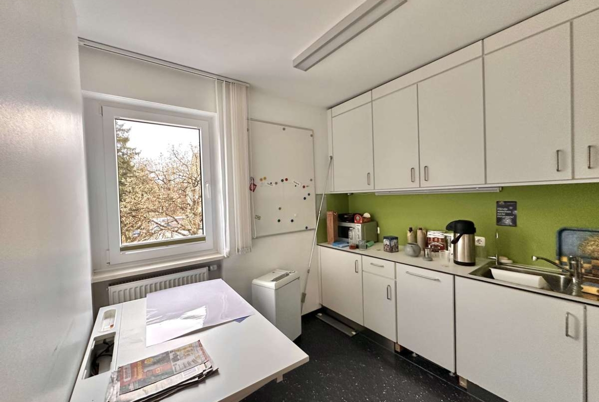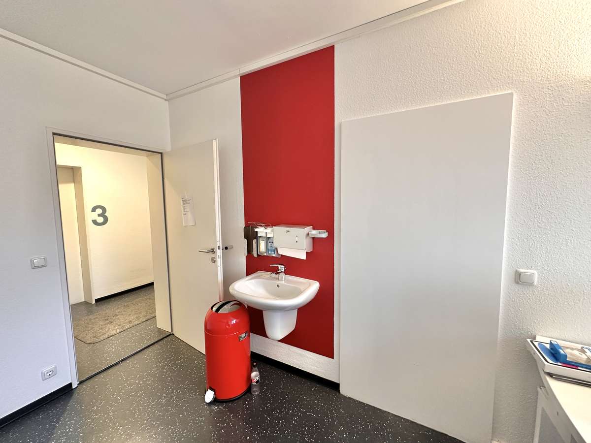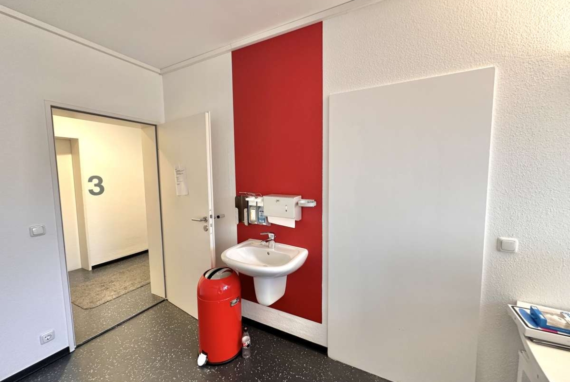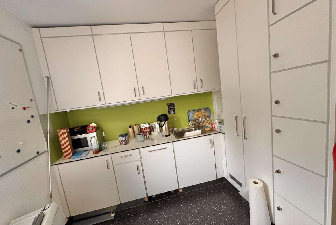 Ergänzt wird das Raumangebot durch ein Labor mit Waschmaschinenanschluss sowie eine Küche/Personalbereich, der ausreichend Platz für Pausen und organisatorische Abläufe bietet.