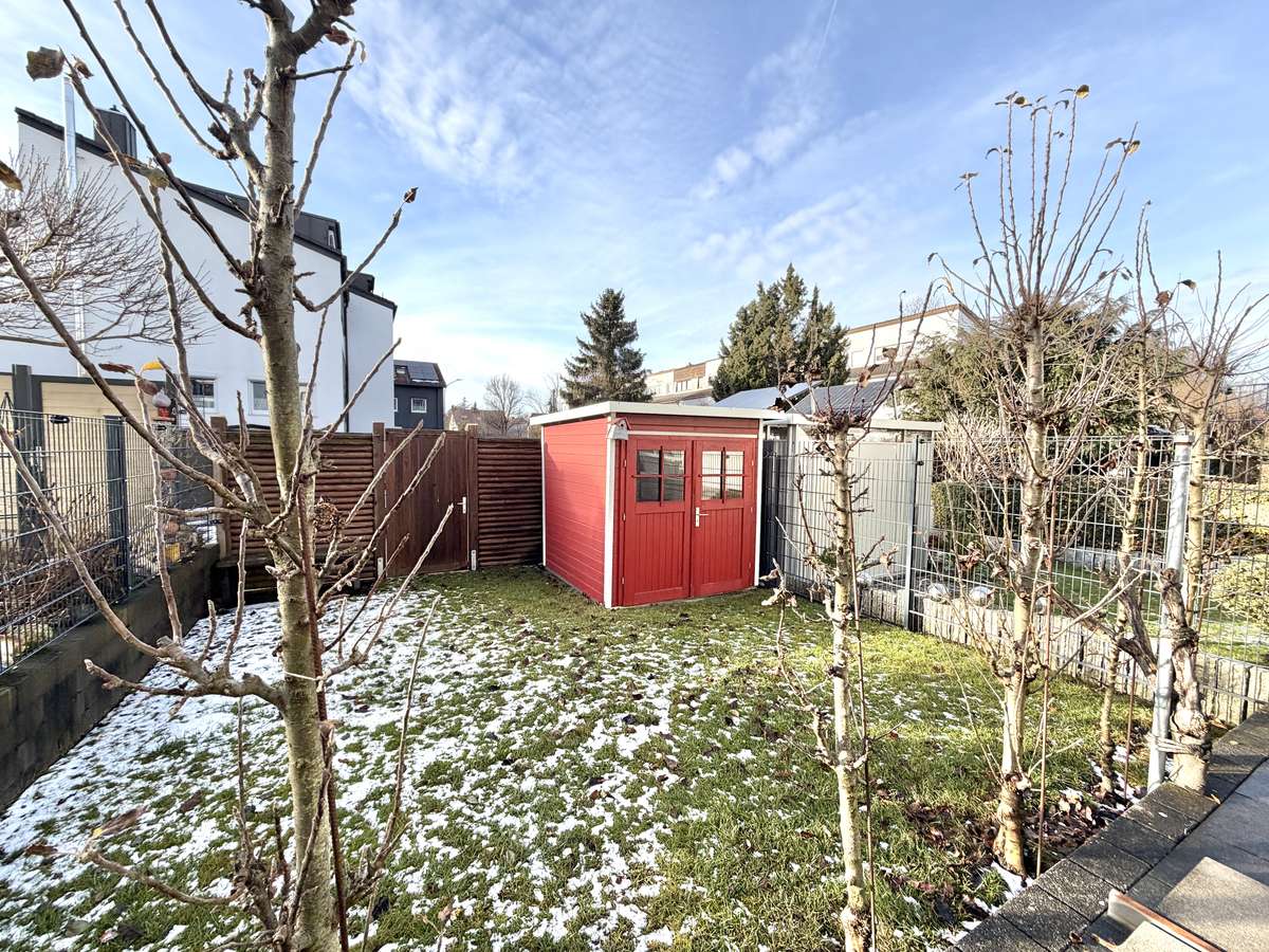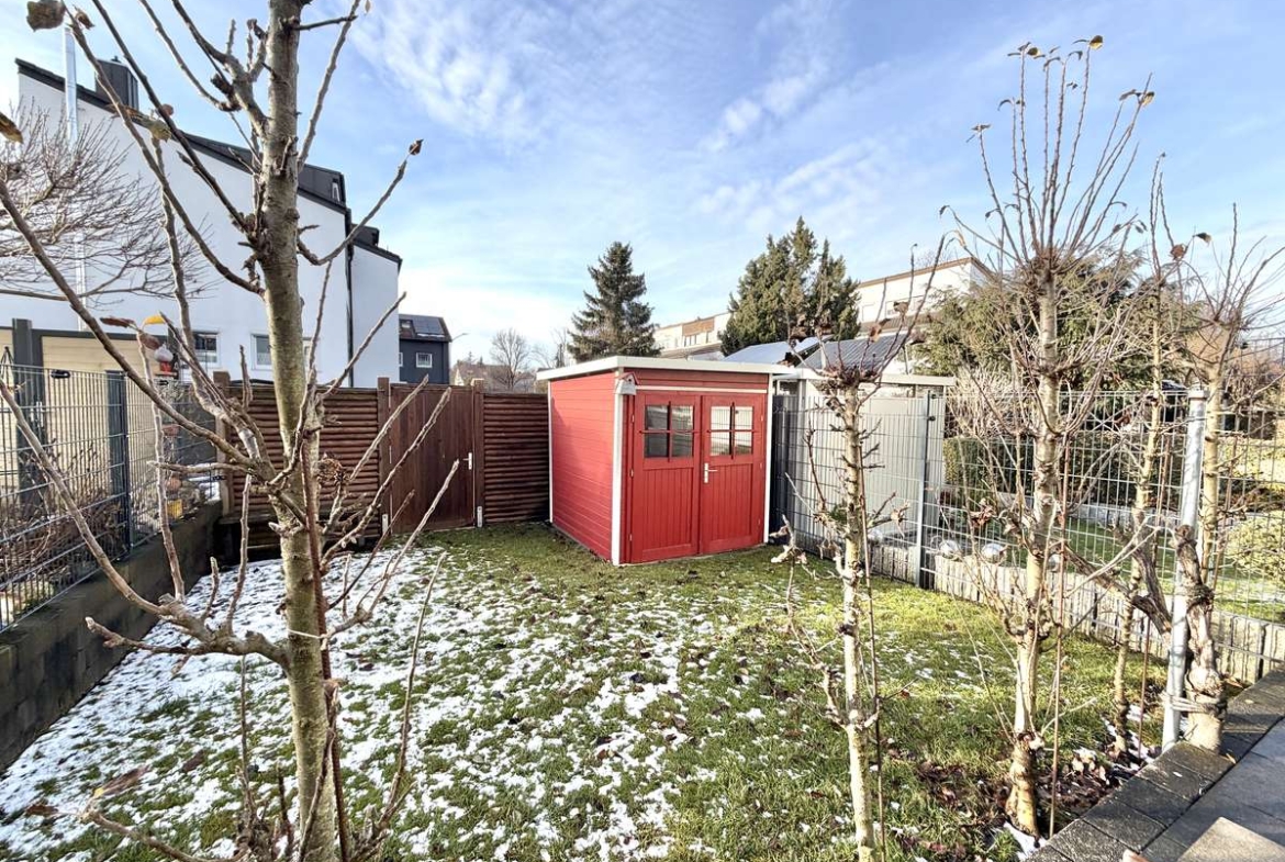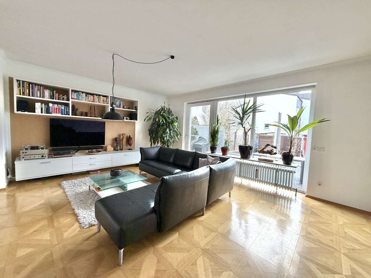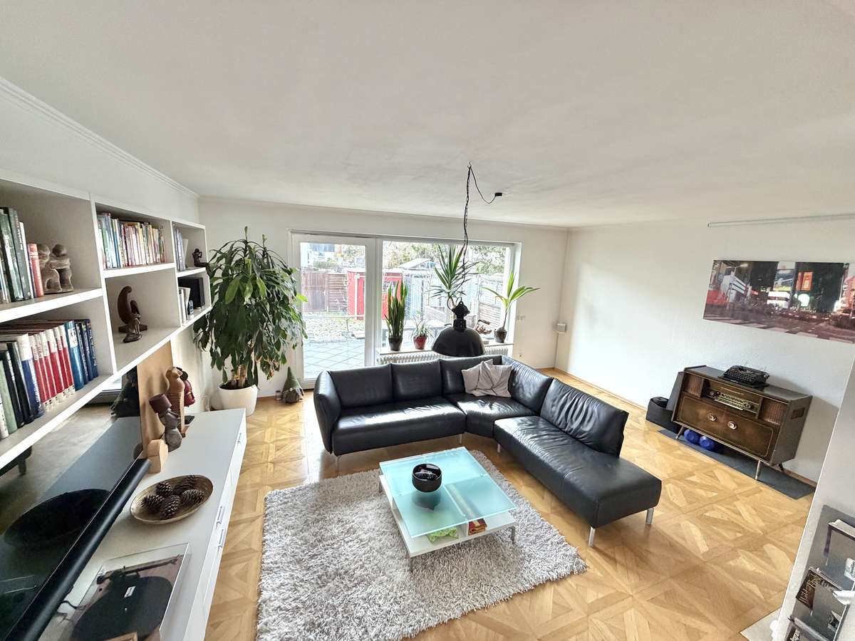 Das Herzstück des Hauses bildet das großzügige Wohnzimmer mit hochwertigem Echtholz-Parkett, großer Fensterfront und freiem Schornstein für einen Kamin. Die Fensterfront sorgt für viel Tageslicht und ermöglicht den direkten Zugang zur sonnigen Süd-West-Terrasse und dem liebevoll angelegten Garten mit Gartenhaus (im Kaufpreis enthalten). Der Garten ist zudem über einen äußeren Zugangsweg erreichbar.