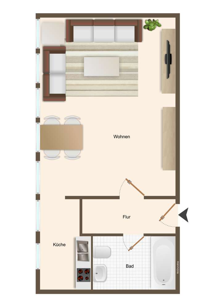 Bereits beim Betreten der Wohnung spürt man das helle und freundliche Wohnambiente, das durch die angenehme Lichtführung und die harmonische Gestaltung sofort ein einladendes Zuhause-Gefühl schafft.