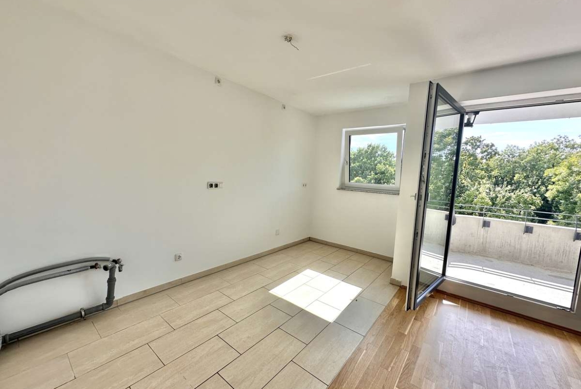 Das Herzstück der Wohnung bildet der helle und einladende Wohnbereich mit integrierter gefliester Wohnküche. Hier ist ausreichend Platz für Kochen, Essen und Wohnen in offener Atmosphäre.