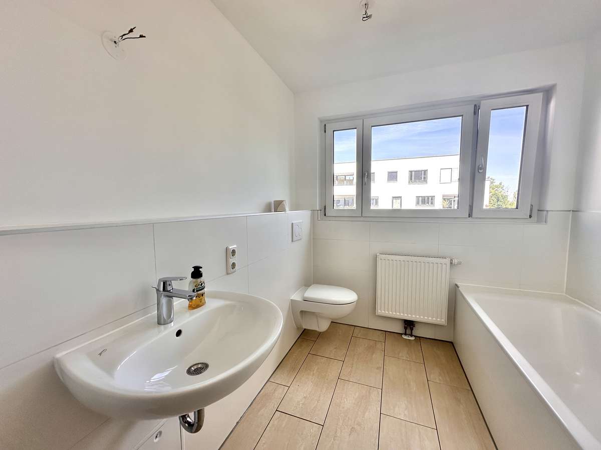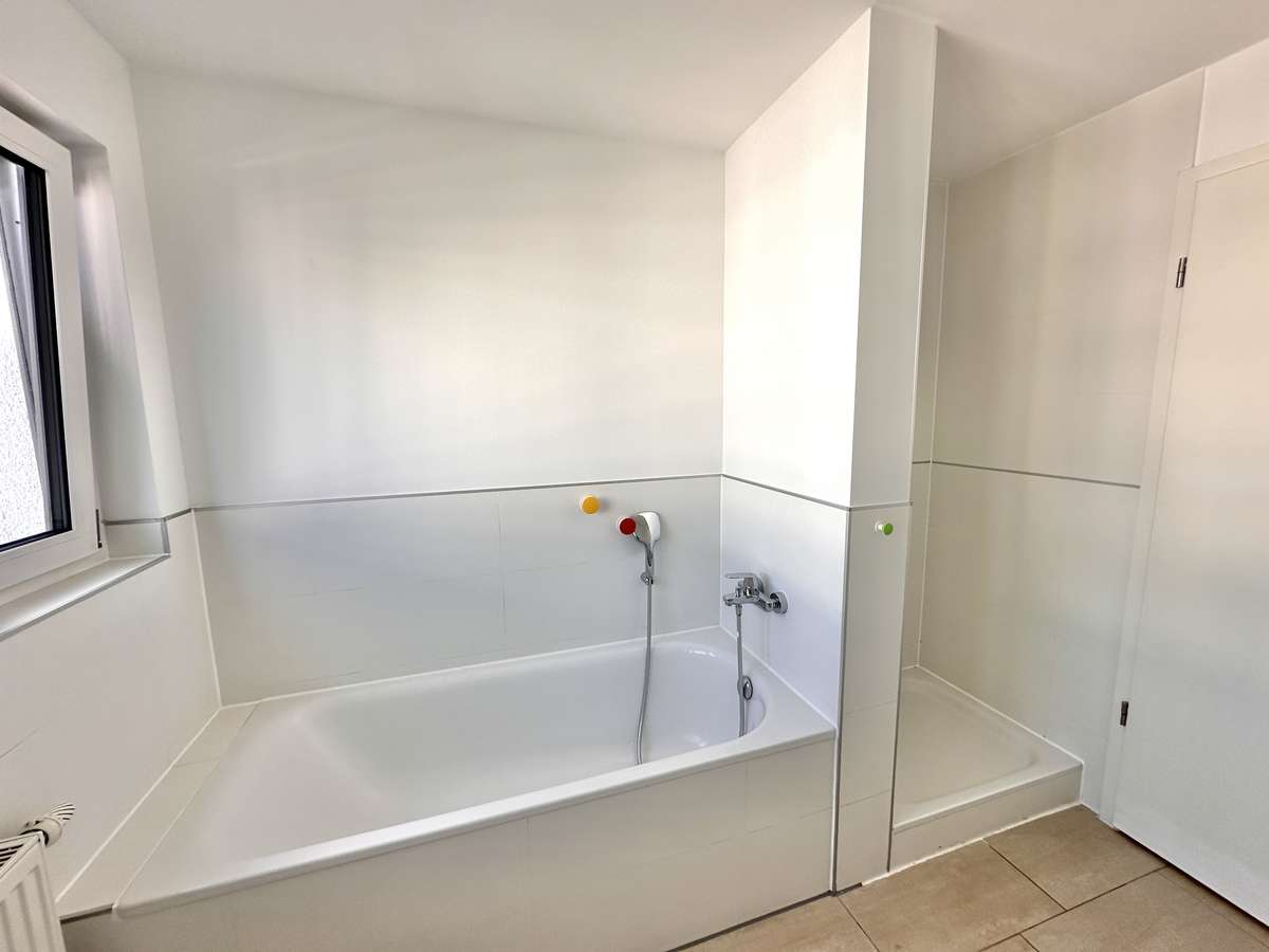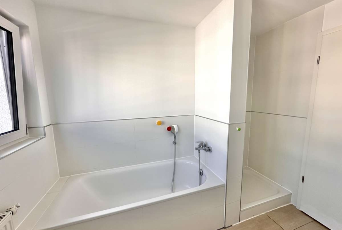 Das Badezimmer mit Fenster überzeugt mit einer komfortablen Ausstattung: Badewanne, separate Dusche, Waschbecken sowie WC.