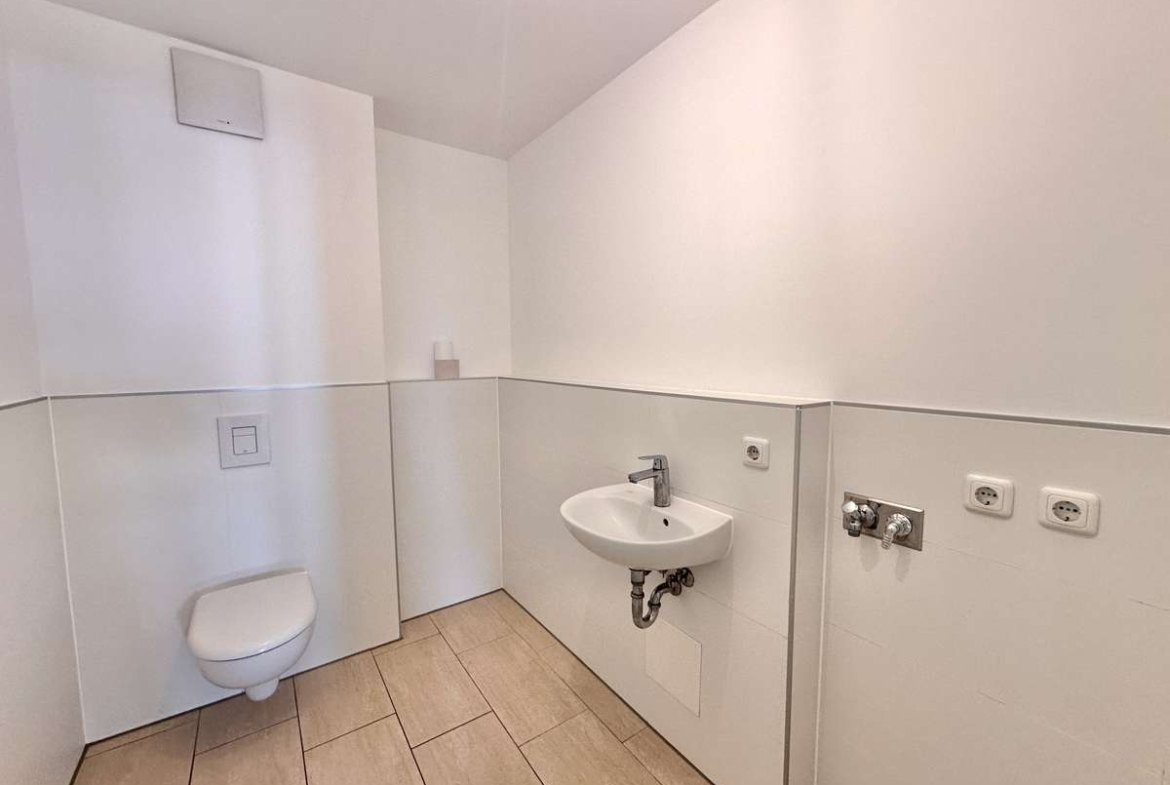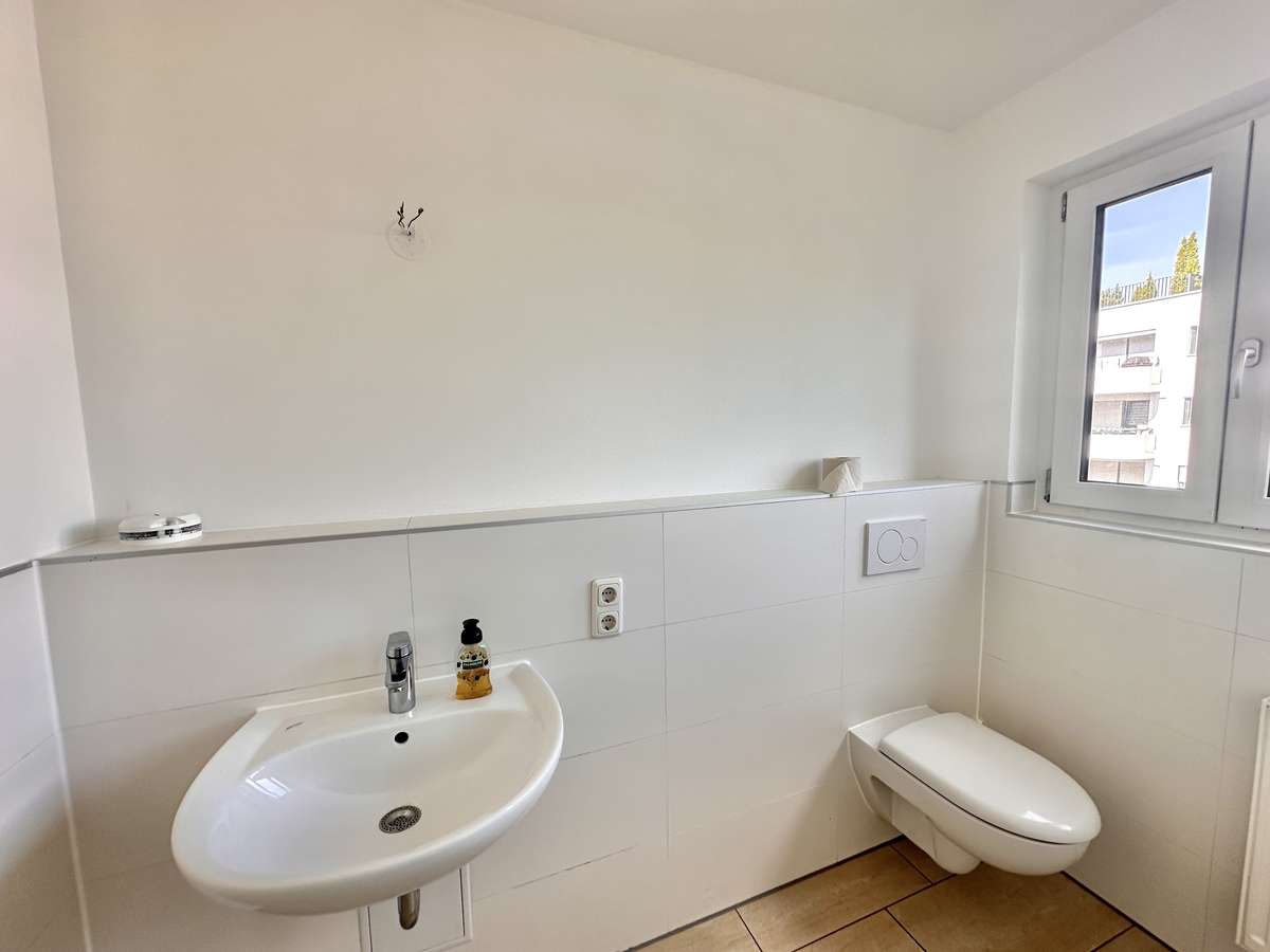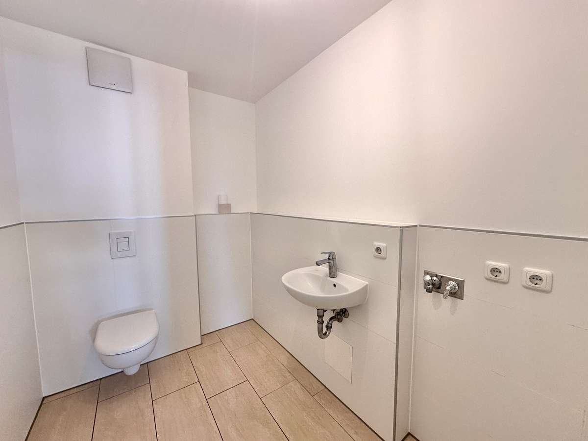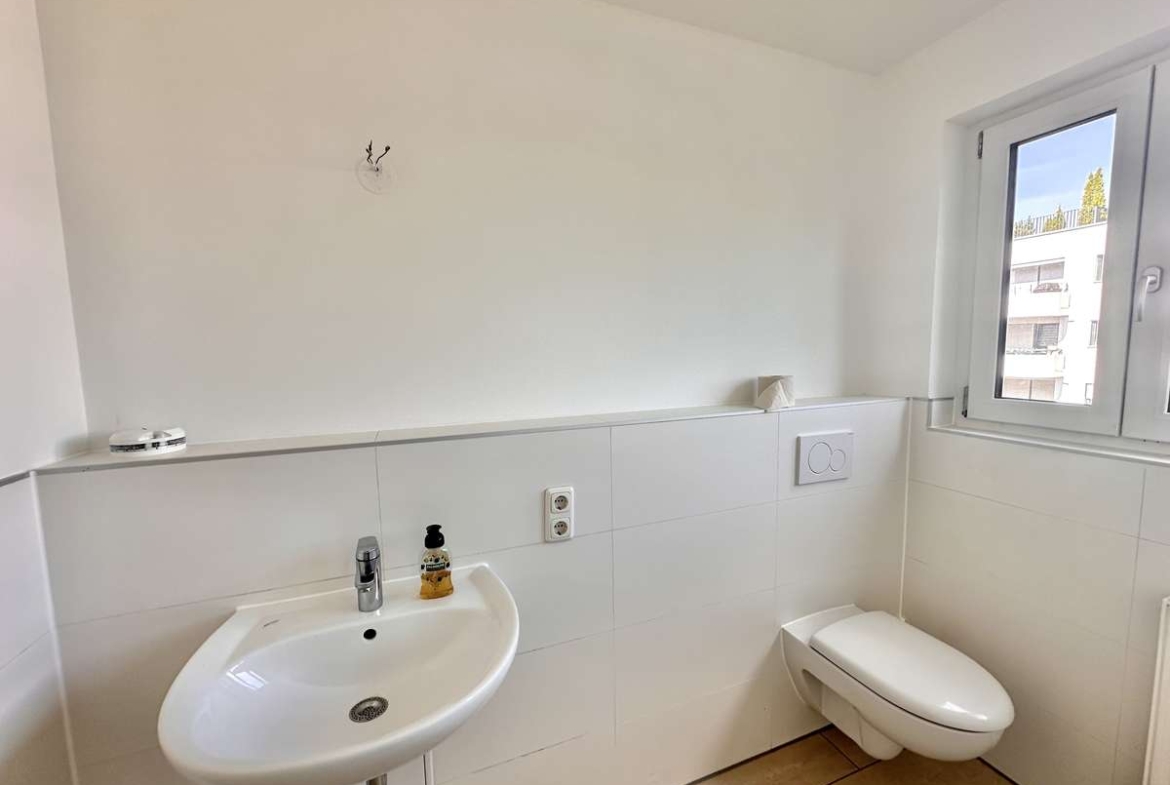 Für Gäste steht ein zusätzliches mit WC mit Waschbecken zur Verfügung – ein Plus an Komfort für die ganze Familie. Der Waschmaschinenanschluss ist hier praktisch integriert.