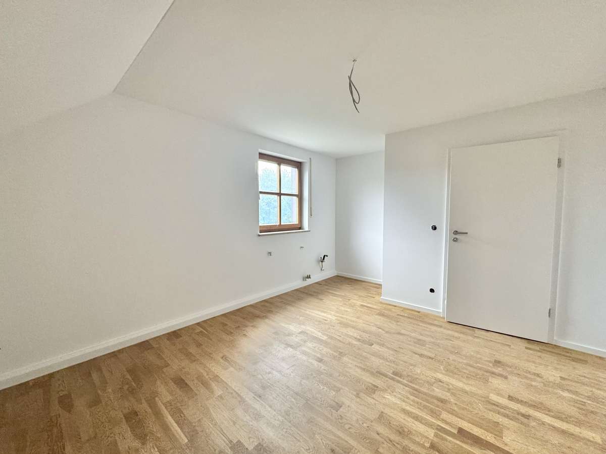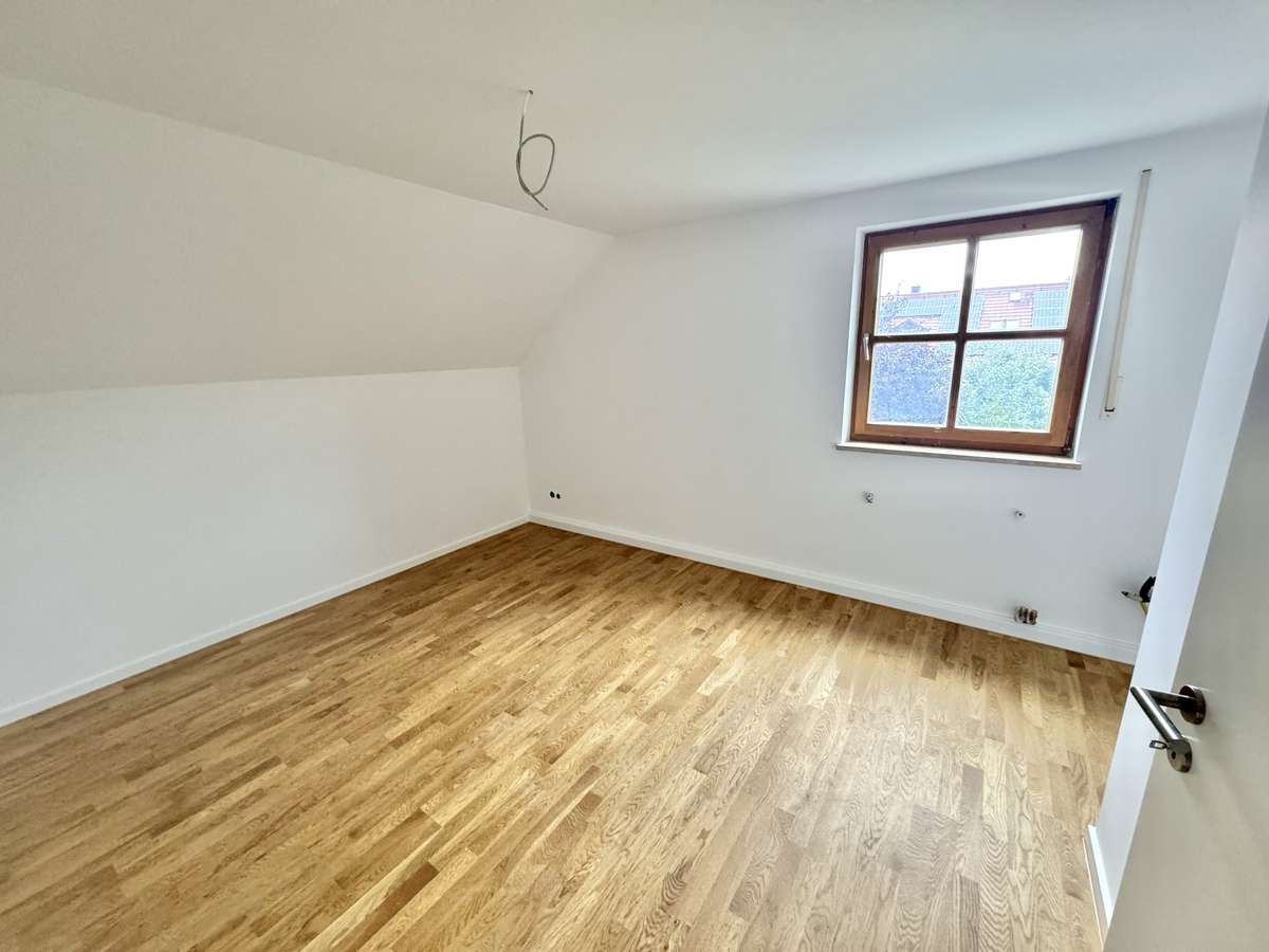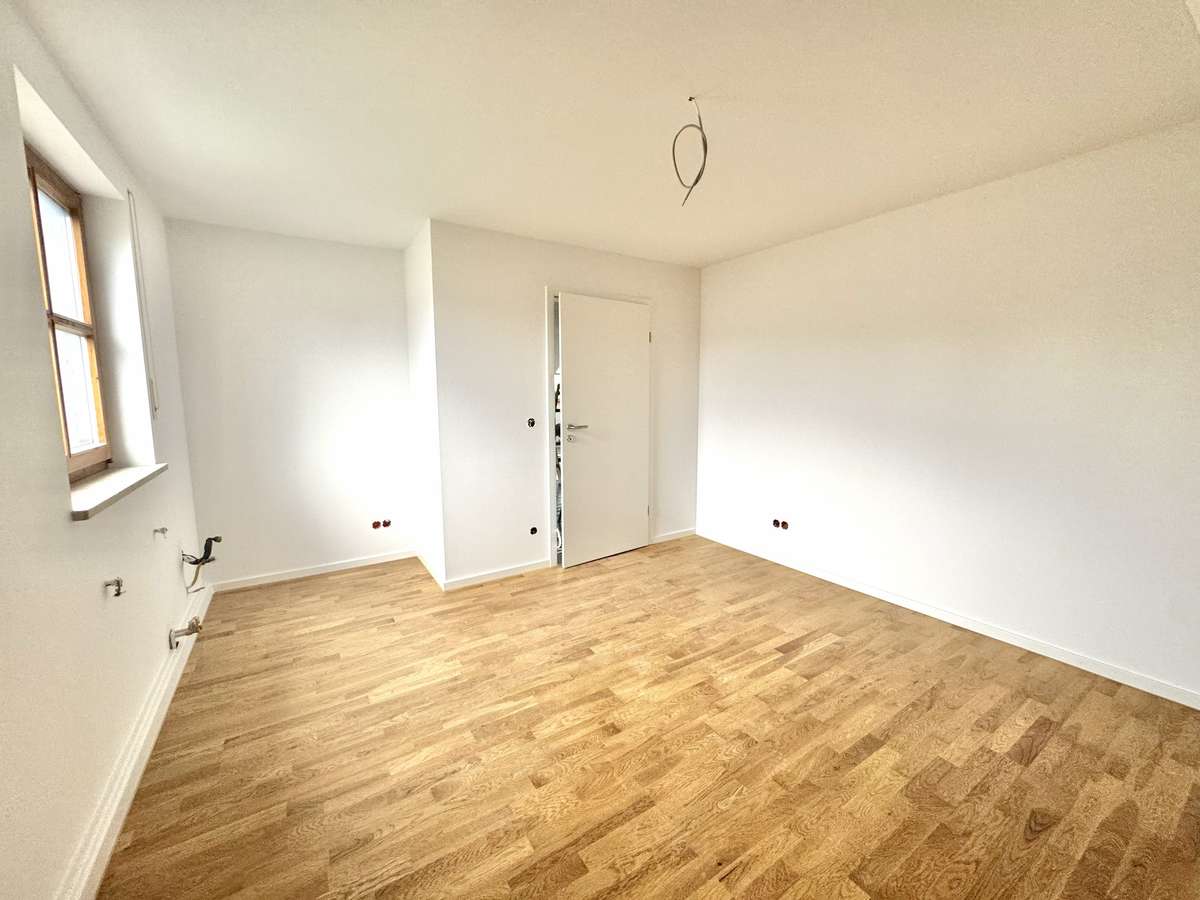 Von hier aus sind alle weiteren Räume der Wohnung direkt zugänglich. Das Schlafzimmer liegt ruhig und bietet ausreichend Platz für ein Doppelbett sowie Stauraum. Gleich daneben befindet sich ein weiteres Zimmer, das sich hervorragend als Arbeits- oder Gästezimmer eignet und ebenso mit neuem Parkettboden ausgestattet ist.