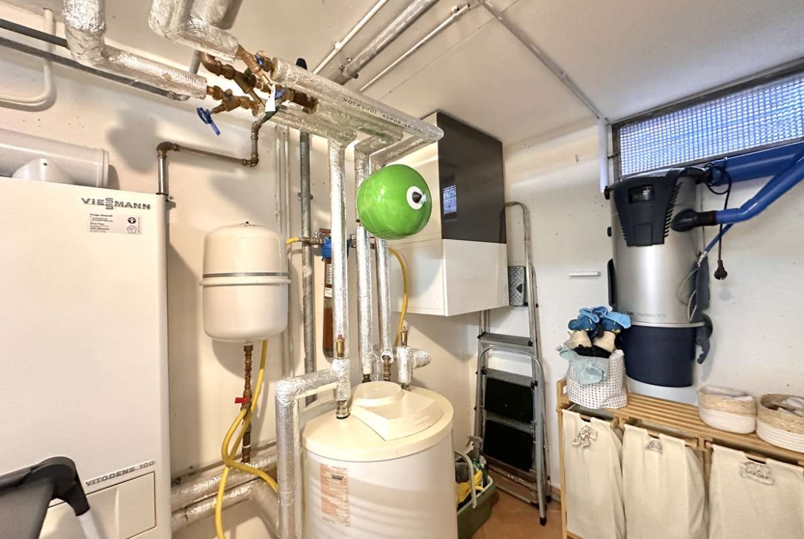 Kellergeschoss: Hier befinden sich ein großzügiger, ausgebauter beheizbarer Hobbyraum (ca. 24m²) mit Fenster, ein Heizungsraum mit Waschmaschinenanschluss, der gut als Waschküche und Trockenraum nutzbar ist sowie ein großer Vorratsraum. Das Haus ist mit weißen 3-fach verglasten Fenstern, weißen Hausinnentüren, Glasfaserinternet und einem Hausstaubsauger ausgestattet. Im Keller wurde von den Vormietern eine WLAN-Verteilerbox installiert, wodurch eine schnelle Internetverbindung gewährleistet ist. Diese kann bei Interesse gegen eine Ablöse übernommen werden.