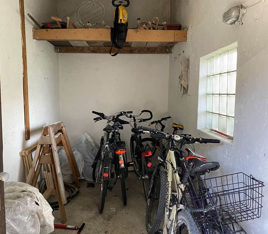 Zur Wohnung gehört ein eigenes Kellerabteil, das zusätzlichen Stauraum bietet. Im gemeinschaftlich genutzten Innenhof steht den Bewohnern eine praktische Fahrradhütte zur Verfügung.