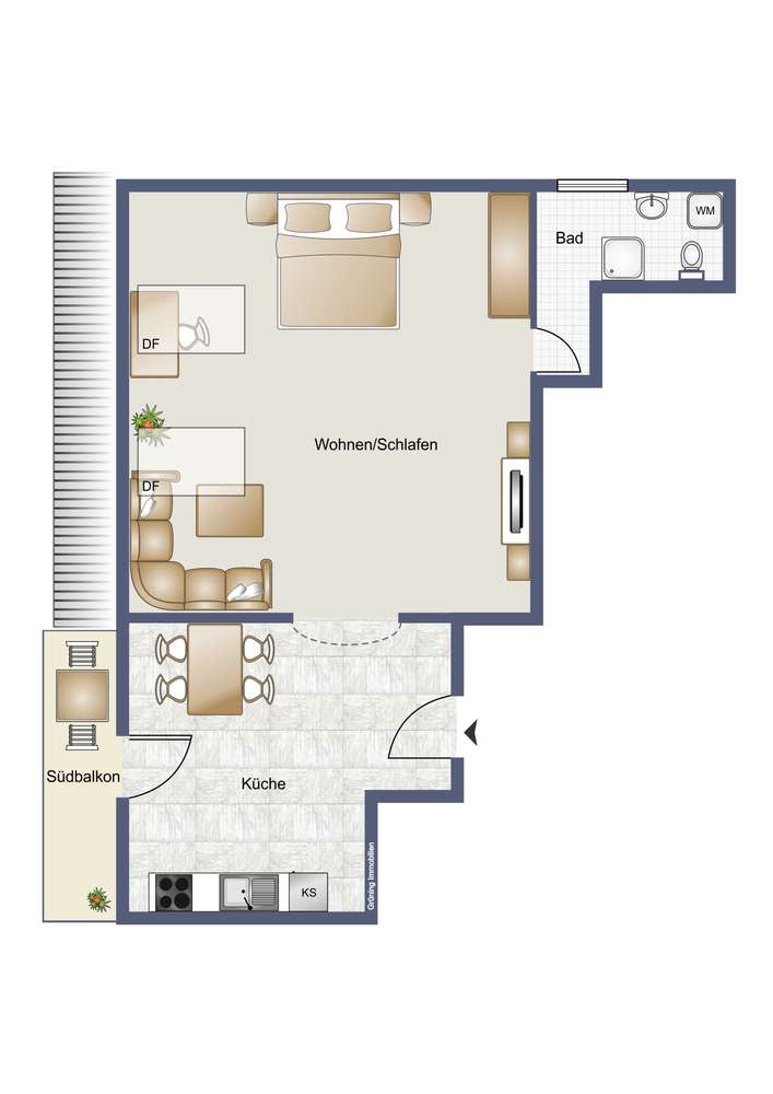 Das Herzstück der Wohnung bildet die helle, geräumige Küche, die nicht nur durch ihren direkten Zugang zum sonnigen Südbalkon überzeugt, Der Küchenbereich ist leer und lässt Ihren Küchenträumen freie Gestaltungswahl.