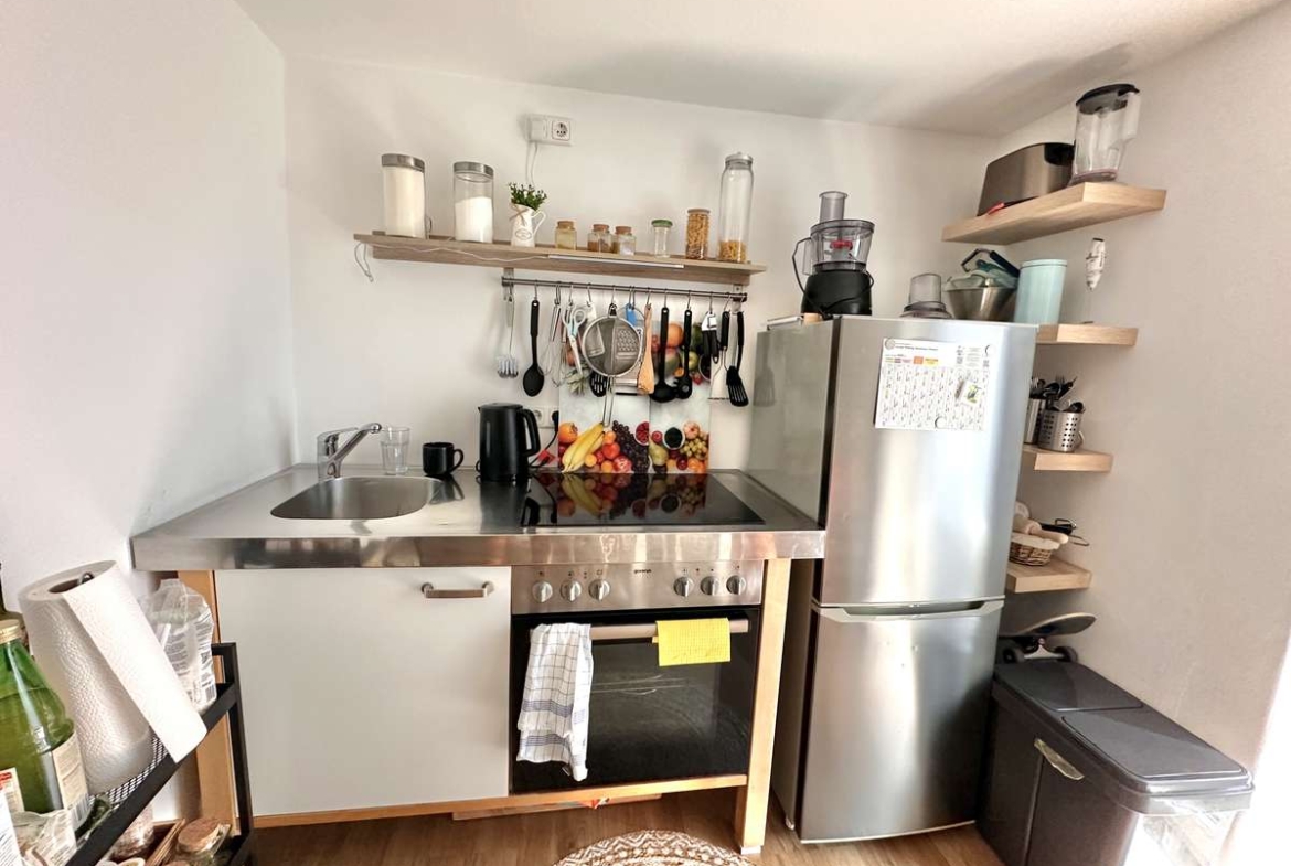 Der Küchenbereich bietet zudem ausreichend Platz für einen gemütlichen Essplatz, der zu entspannten Frühstücken oder gemeinsamen Abendessen einlädt.