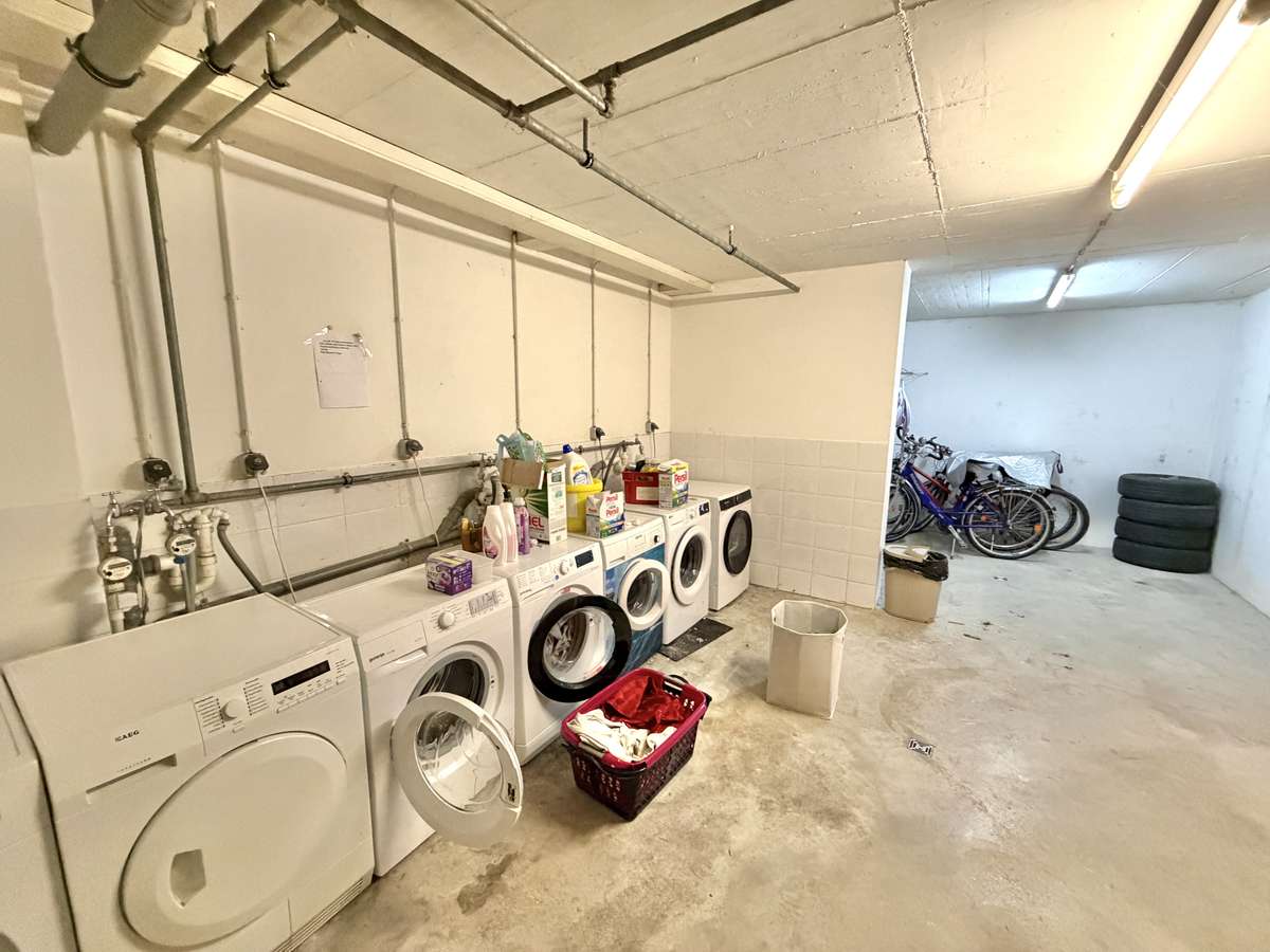 Zur Wohnung gehören ein gemeinschaftlicher Wasch- und Trockenraum, in dem ausreichend Platz für eine eigene Waschmaschine besteht, ein Außenstellplatz sowie die Mitbenutzung des Gartens, der zusätzlichen Freiraum im Grünen bietet.