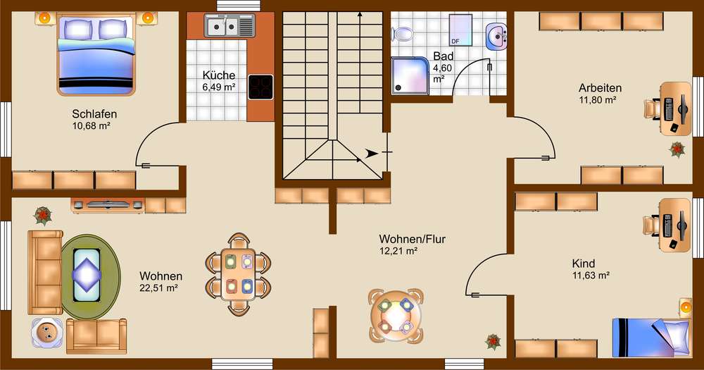 Direkt angrenzend erreichen Sie das erste von insgesamt vier Zimmern, das sich ideal als Arbeitszimmer nutzen lässt. Das zweite Zimmer bietet ebenfalls viel Platz und eignet sich beispielsweise als weiteres Schlafzimmer oder Gästezimmer.