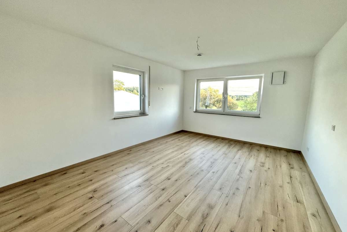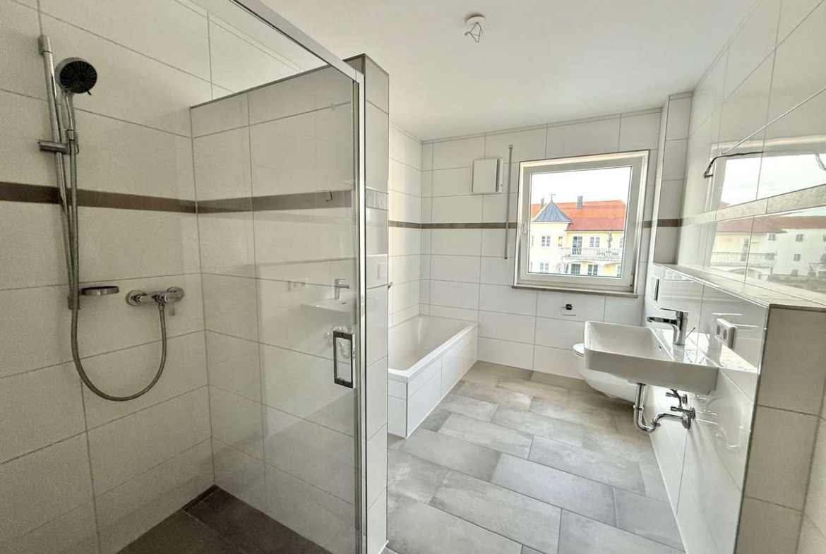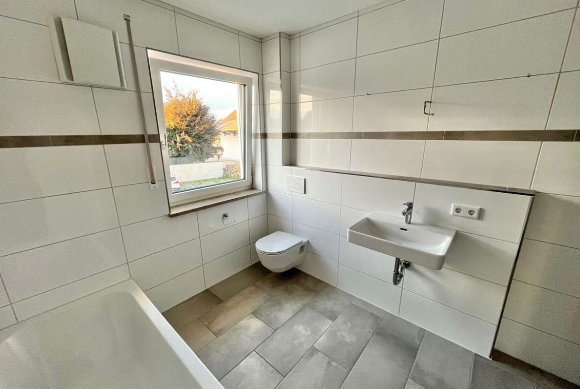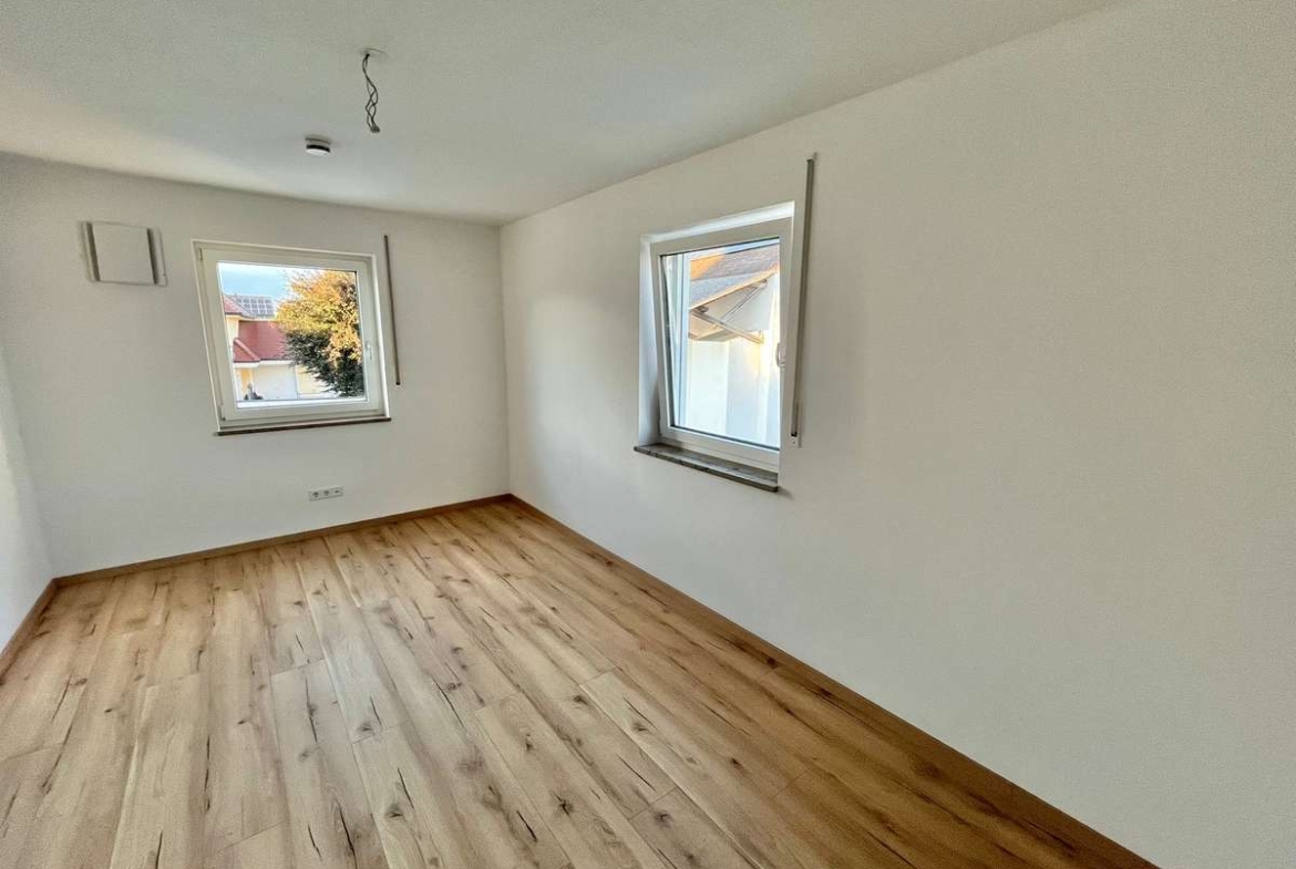 Die moderne 4-Zimmer-Wohnung (ca. 107m²) im 1. Obergeschoss eines 2020 erbauten Mehrfamilienhauses überzeugt durch ihre großzügige, helle Raumaufteilung, zeitgemäße Architektur und einen großen Süd-Balkon mit unverbautem Blick ins Grüne – ideal, um sonnige Stunden zu genießen..