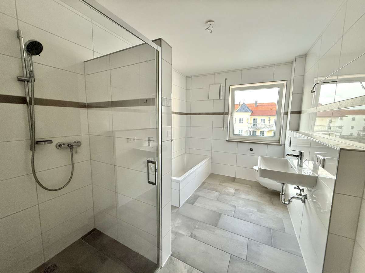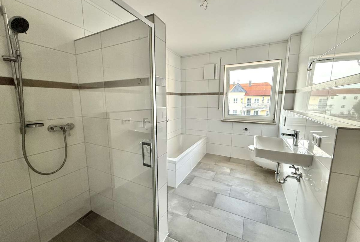 Offen an die Küche angrenzend, verbindet das Wohnzimmer modernes Wohngefühl mit Komfort. Von hier aus gelangen Sie direkt auf den sonnigen Süd-Balkon, der zum Entspannen und Verweilen einlädt. Das Tageslichtbad ist weiß gefliest und verfügt über eine Dusche, eine Badewanne, ein WC sowie ein Waschbecken. Ein praktischer Waschmaschinenanschluss rundet die Ausstattung ab und sorgt für zusätzlichen Komfort im Alltag.