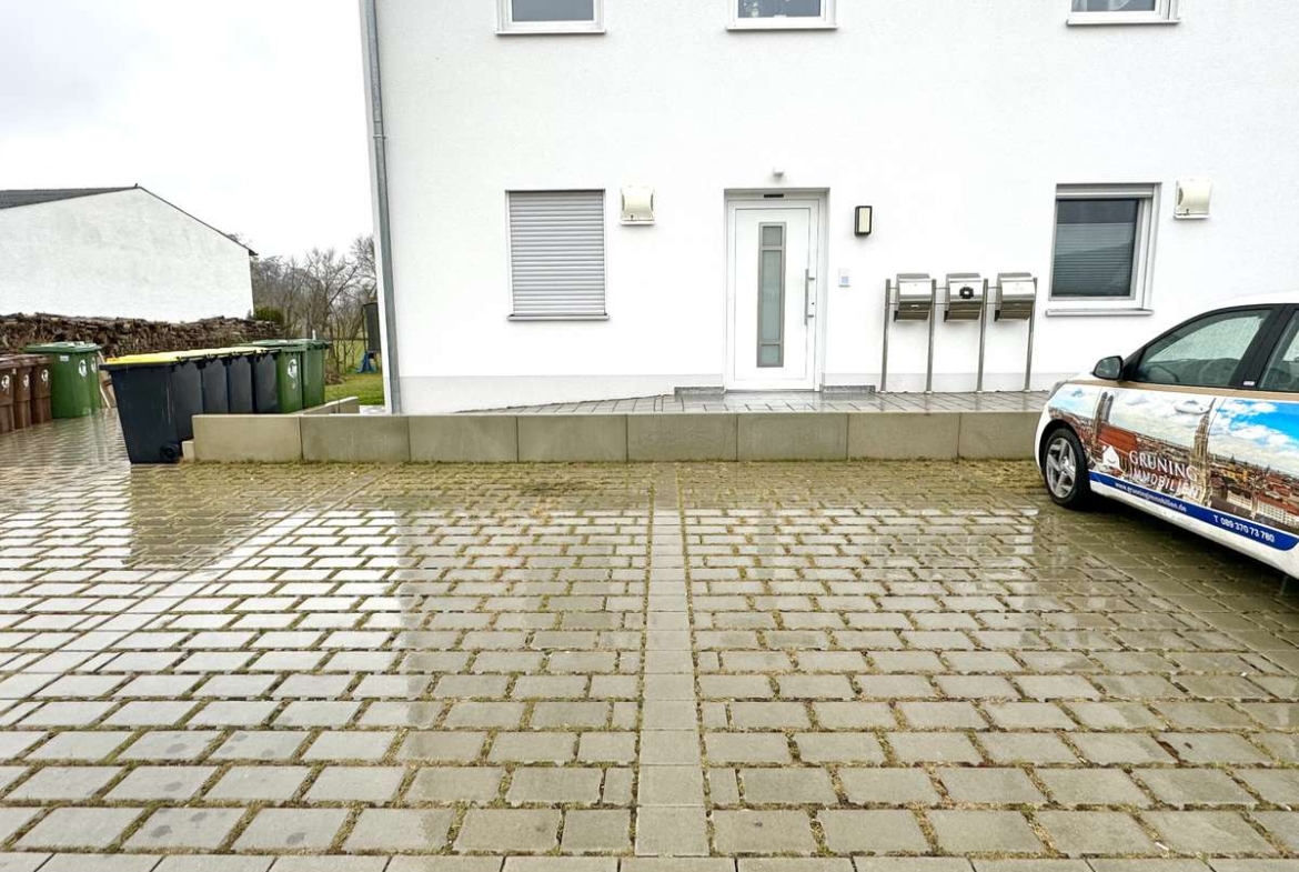 Zur Wohnung gehören außerdem zwei Außenstellplätze, ein eigenes Kellerabteil, ein gemeinschaftlicher Fahrradkeller sowie der Zugang zu einem Gemeinschaftsgarten.