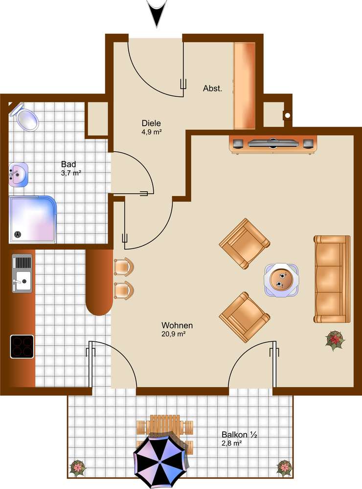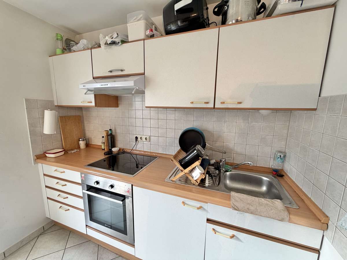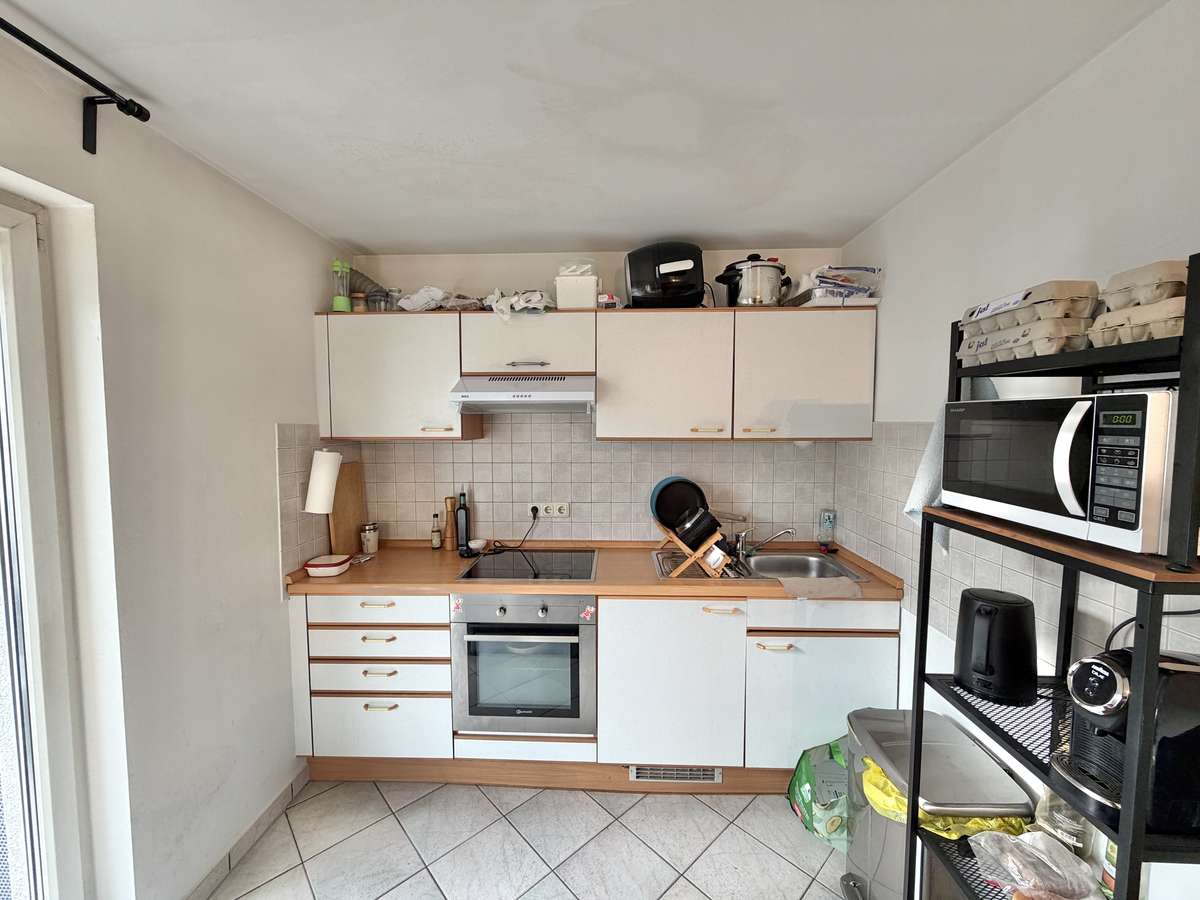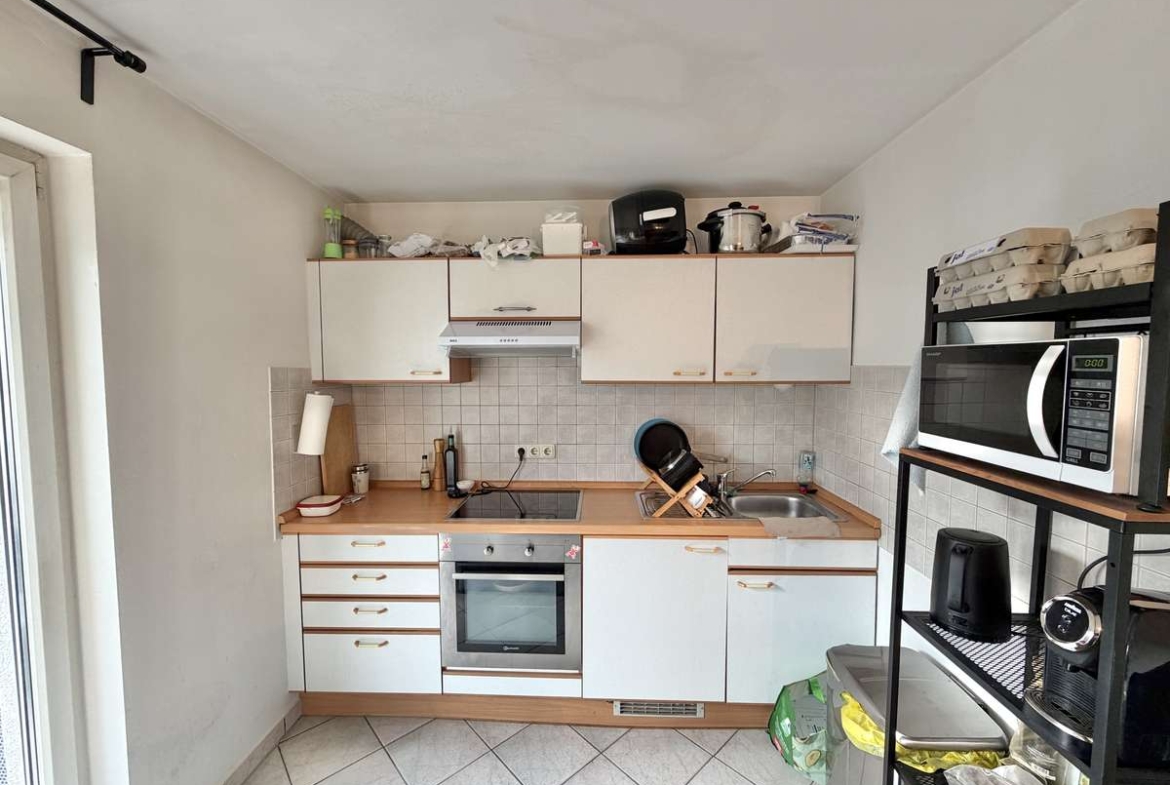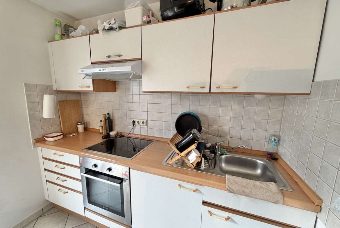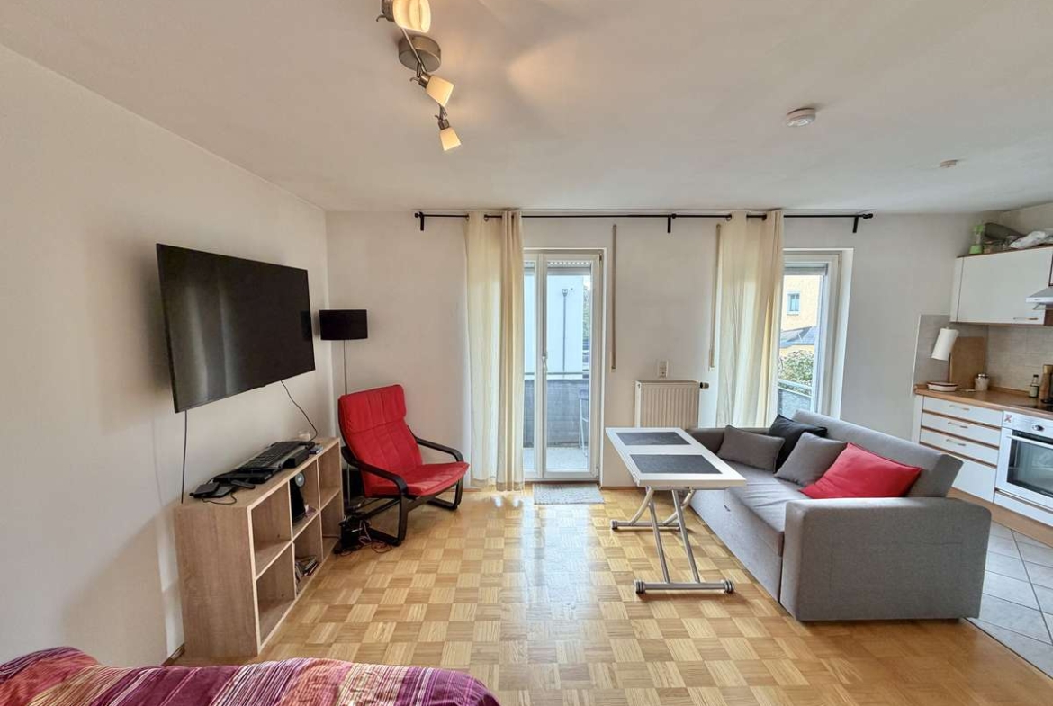 Der großzügige Wohn- und Schlafbereich ist mit hochwertigem Parkettboden ausgestattet und bietet direkten Zugang zum herrlichen Südbalkon, der sonnige Stunden im Freien verspricht. Die offene, weiß geflieste Küche ist mit einer gepflegten Einbauküche samt Elektrogeräten ausgestattet, die der Eigentümer dem neuen Mieter kostenfrei überlässt.