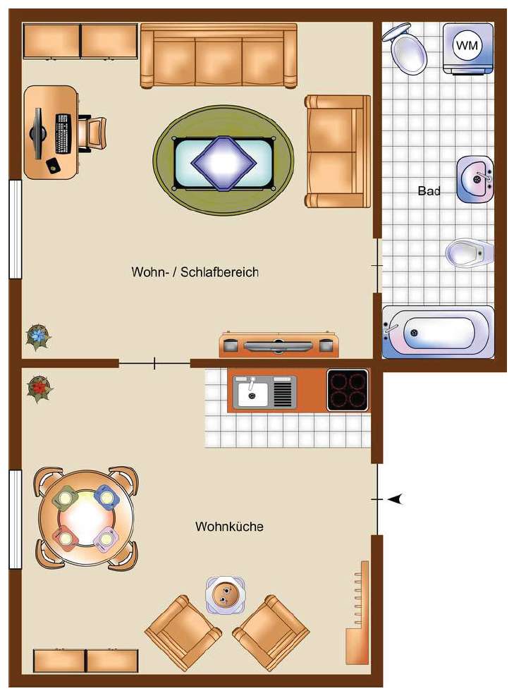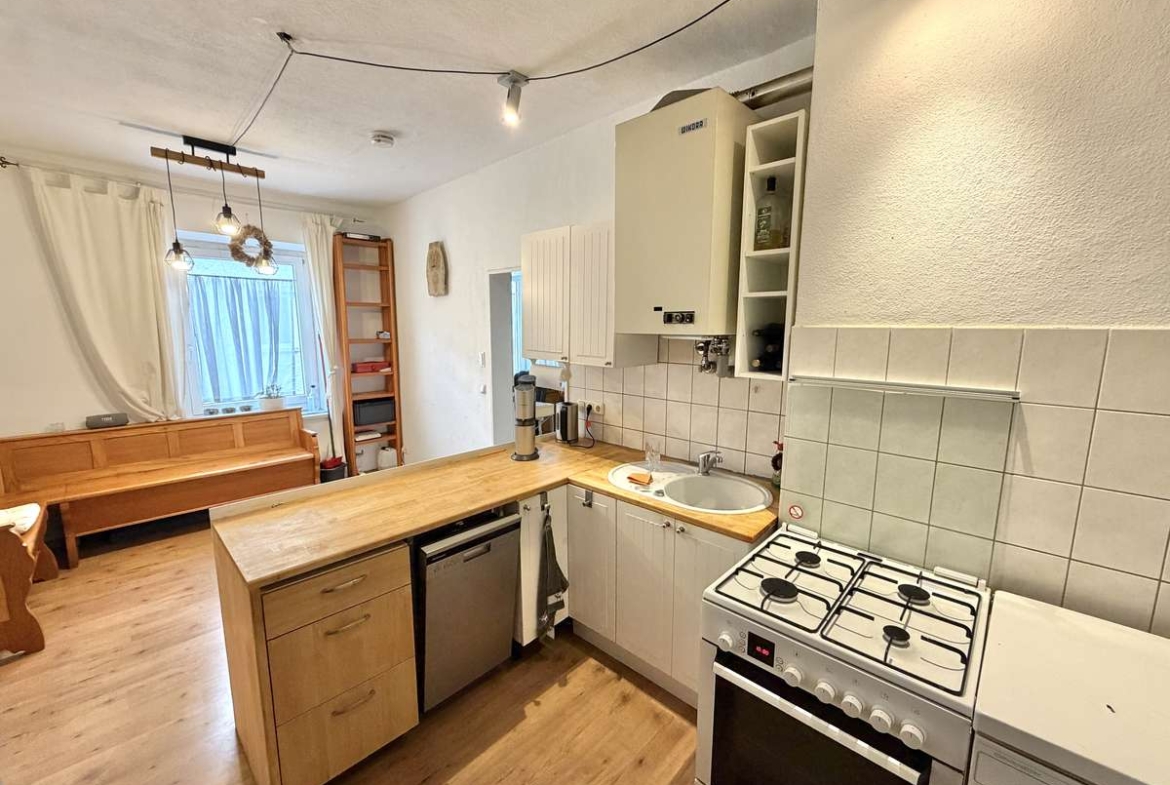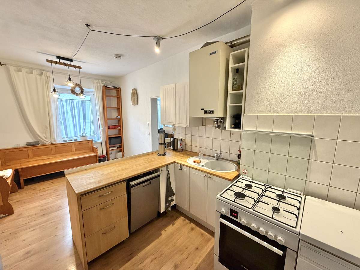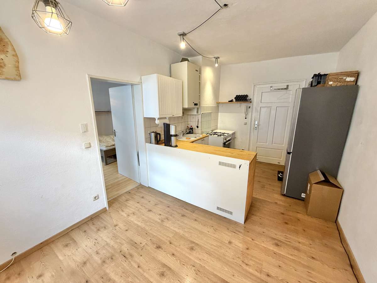 Die 1,5-Zi.-Whg ist mit einem gepflegten Laminatboden im Wohn- und Schlafbereich sowie hellen Fliesen im Bad ausgestattet. Beim Betreten der Wohnung gelangt man direkt in die gemütliche Küche mit Fenster und Platz für einen kleinen Esstisch. Die vorhandene Einbauküche mit Spüle, Spülmaschine, Gasherd und Backofen kann gegen eine Ablöse von VB € 700,- vom Vormieter übernommen werden.