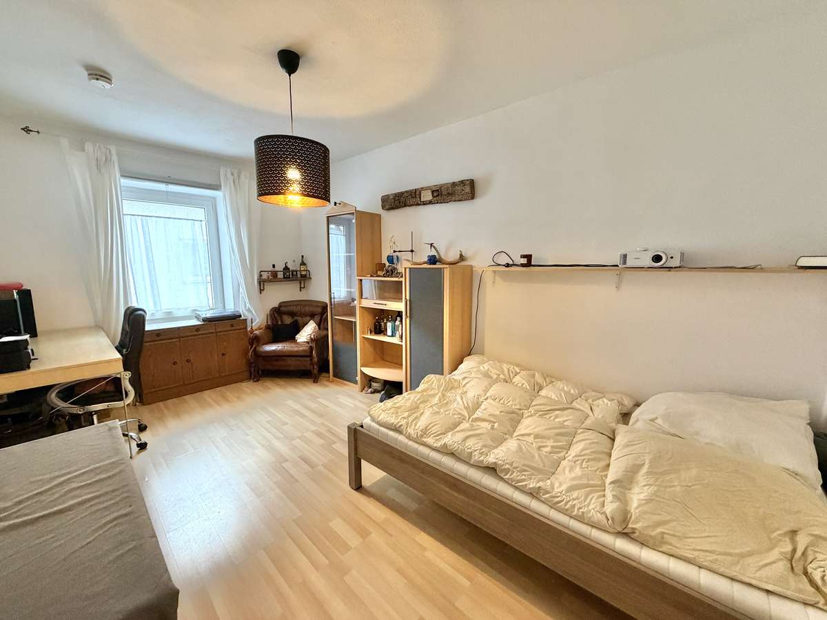 Das Schlafzimmer bietet ausreichend Platz für ein Bett und einen Kleiderschrank und sorgt durch seine ruhige Lage für ein angenehmes Wohngefühl.