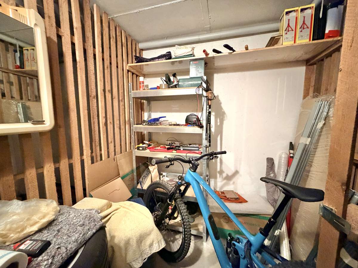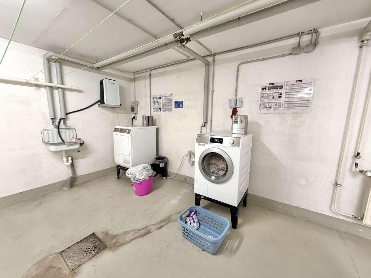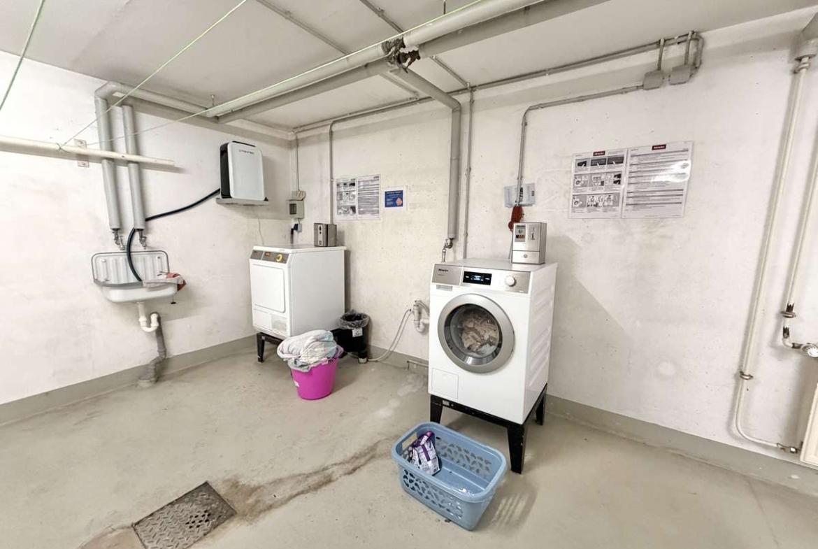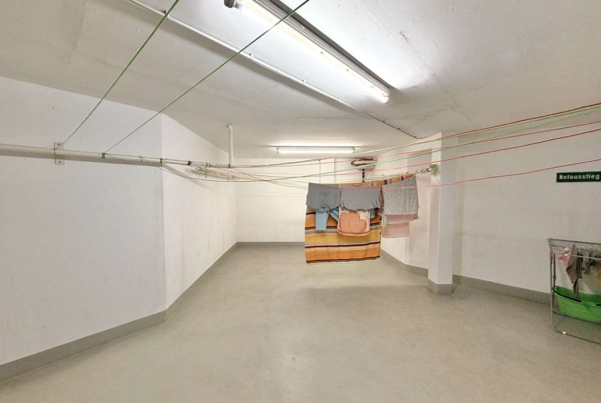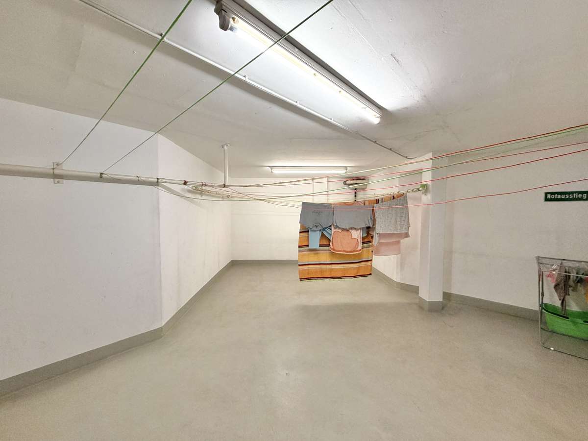 Zur Wohnung gehört außerdem ein eigenes Kellerabteil mit Licht und Strom, das zusätzlichen Stauraum bietet. Darüber hinaus steht ein gemeinschaftlicher Wasch- und Trockenraum zur Verfügung.