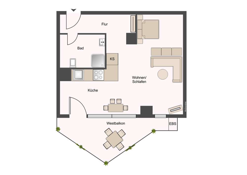 Besonderes Highlight ist der großzügige Süd-West-Balkon, der dank seiner sonnigen Ausrichtung zu entspannten Stunden im Freien einlädt. Eine praktische Abstellkammer auf dem Balkon bietet zusätzlichen Stauraum.