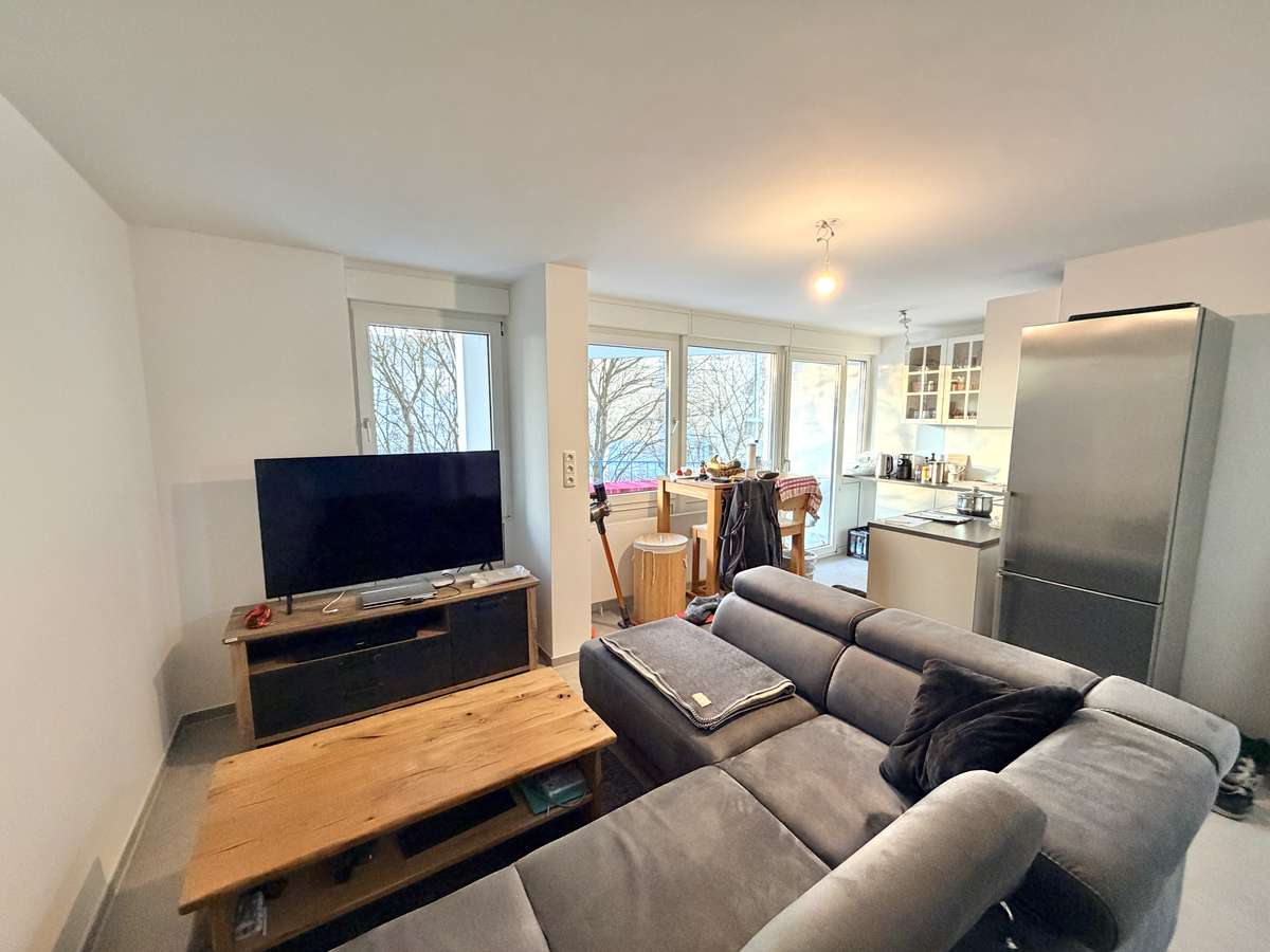 Beim Betreten der Wohnung empfängt Sie ein heller, durchdachter Grundriss mit einer warmen und wohnlichen Atmosphäre, die durch die großen, eleganten grauen Fliesen in allen Räumen stilvoll unterstrichen wird. Die einheitliche Gestaltung sorgt für ein modernes Gesamtbild und ein harmonisches Wohngefühl.